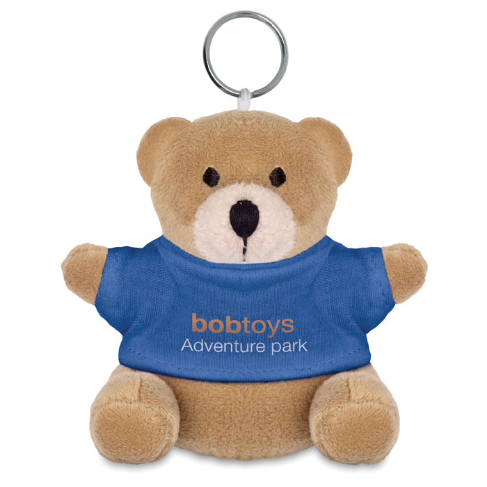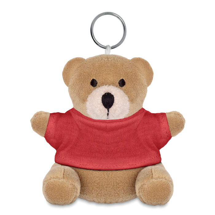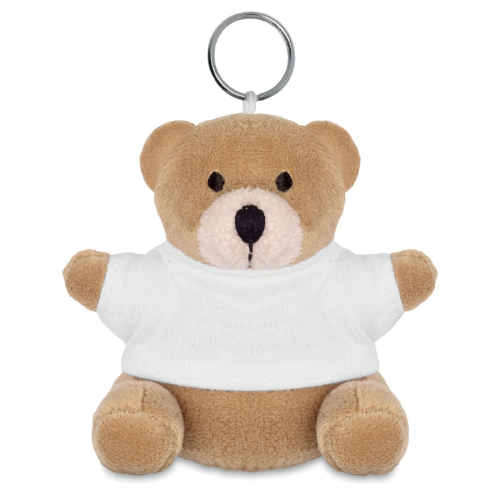 Teddy bear plush key ring. 100% cotton t-shirt for logo imprint.